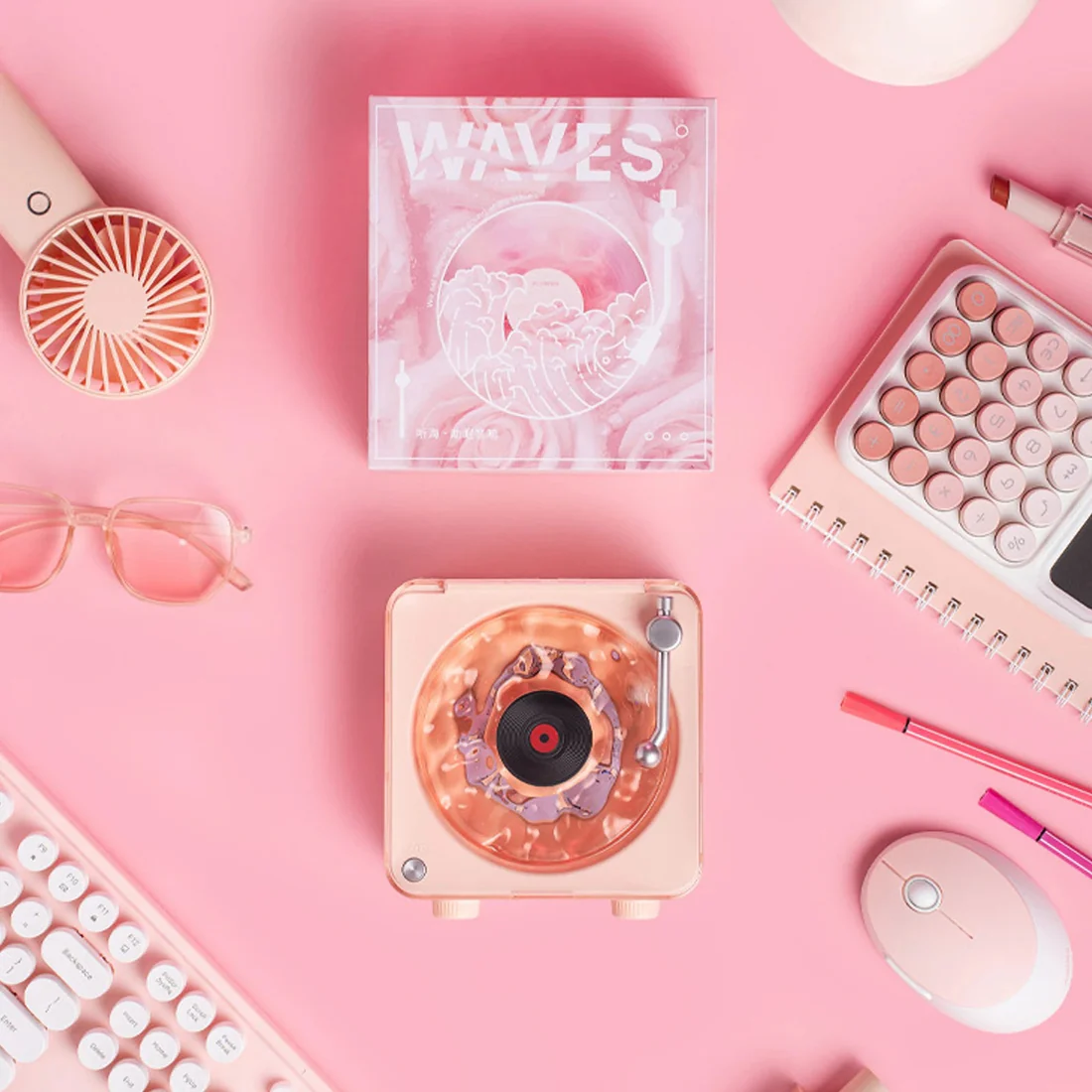 اسپیکر بلوتوثی طرح گرامافون صورتی