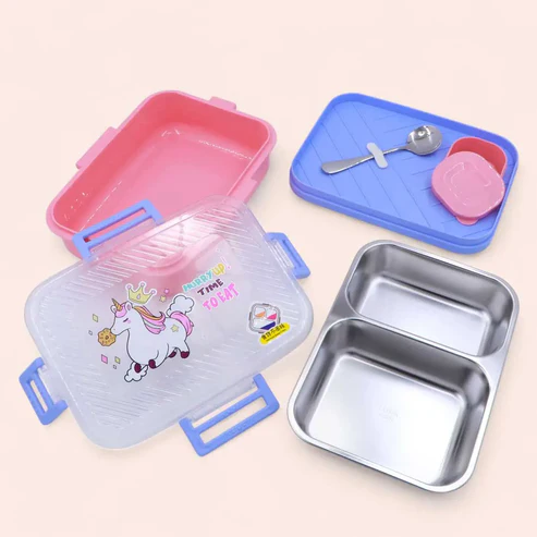 ALT=ظرف غذا و لانچ باکس دو در یک استیل سه بخشی فانتزی