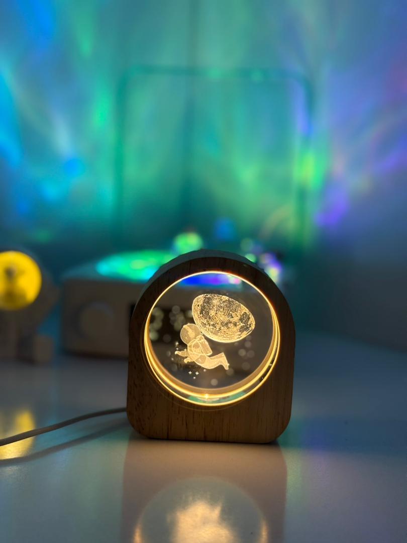 با قاب چوبی یکی از زیباترین و کاربردیترین انتخابها برای دکوراسیون داخلی است. طراحی این چراغ خواب الهامگرفته از سیاره فضانورد و ماه بوده و با ترکیب نور ملایم و ساختار کریستالی، فضایی آرامشبخش و دلنشین برای اتاق شما ایجاد میکند.