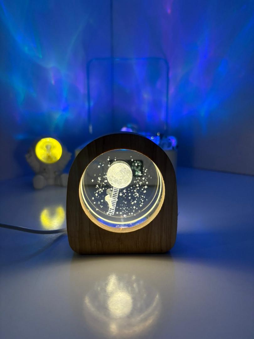 با قاب چوبی یکی از زیباترین و کاربردیترین انتخابها برای دکوراسیون داخلی است. طراحی این چراغ خواب الهامگرفته از سیاره فضانورد و نردبان بوده و با ترکیب نور ملایم و ساختار کریستالی، فضایی آرامشبخش و دلنشین برای اتاق شما ایجاد میکند.