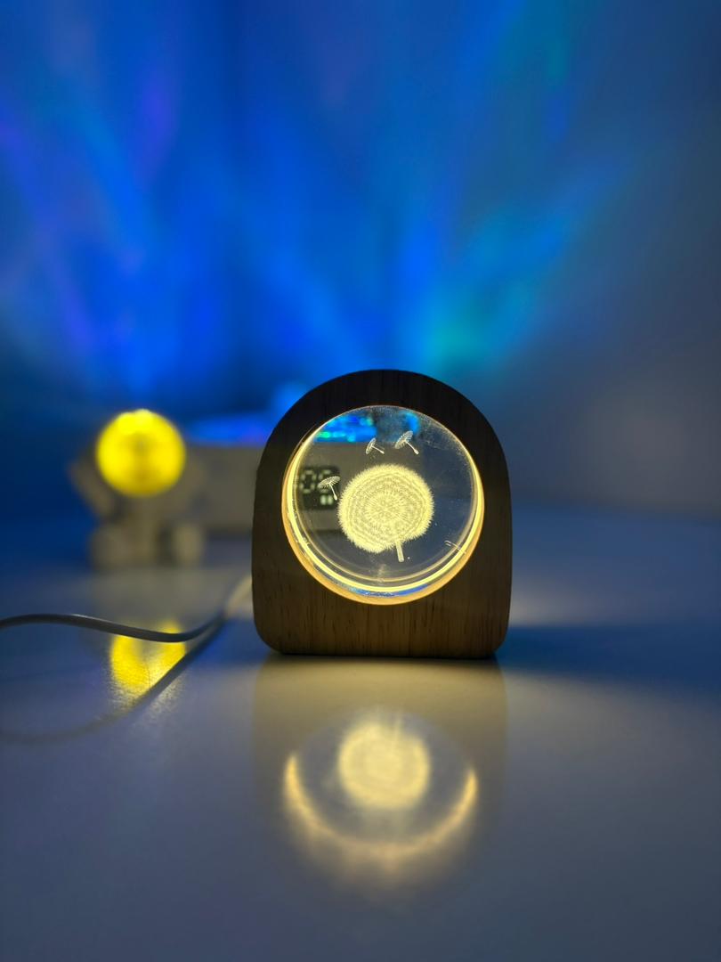 چراغ خواب کریستالی طرح قاصدک با قاب چوبی